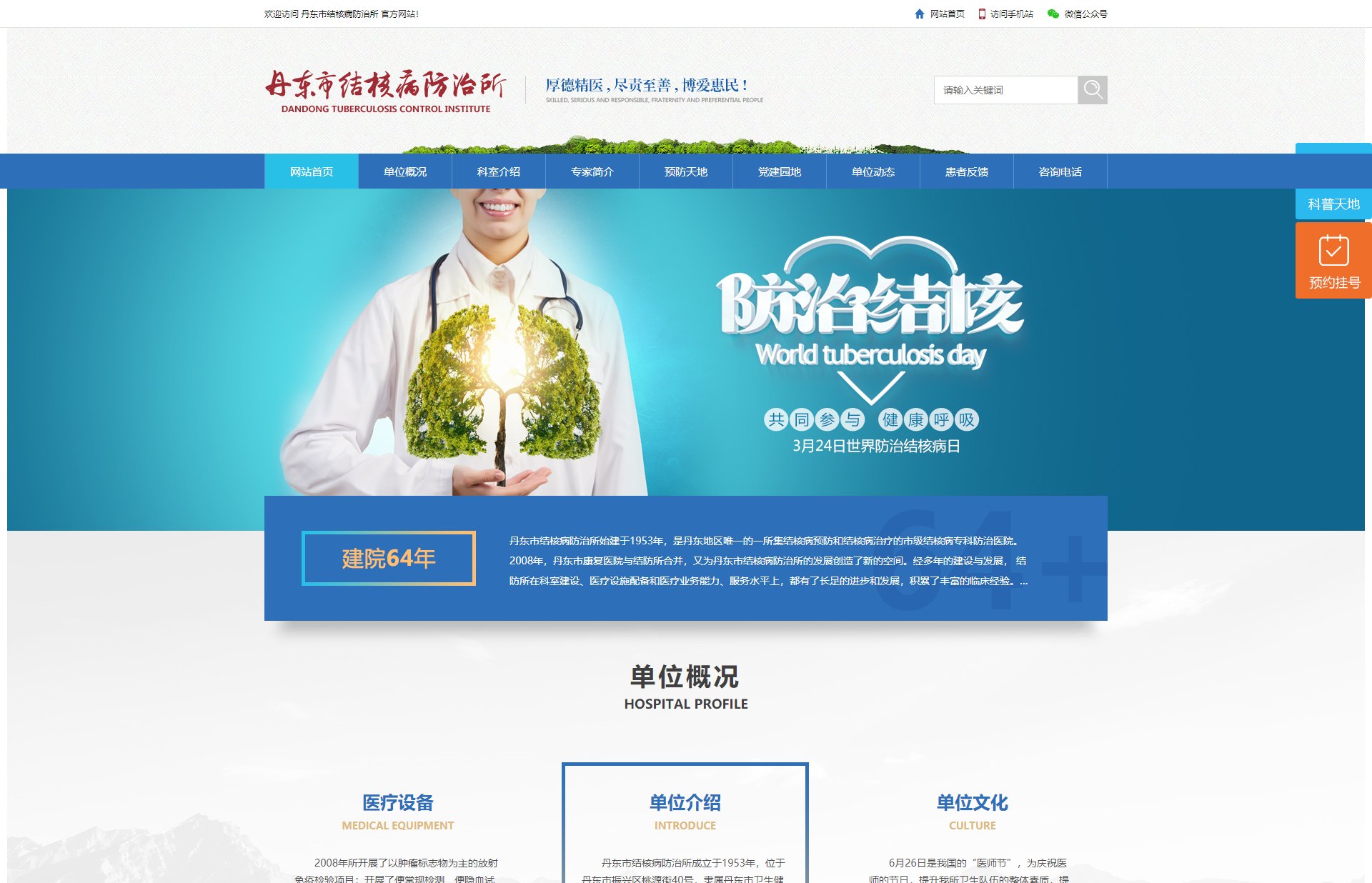 丹東市結(jié)核病防治所成立于1953年,位于丹東市振興區(qū)桃源街40號(hào),隸屬丹東市衛(wèi)生健康委員會(huì),是丹東地區(qū)唯一一家市級(jí)集結(jié)核病預(yù)防與治療為一體的全額事業(yè)單位,也是市內(nèi)三區(qū)結(jié)核病人的歸口管理單位。