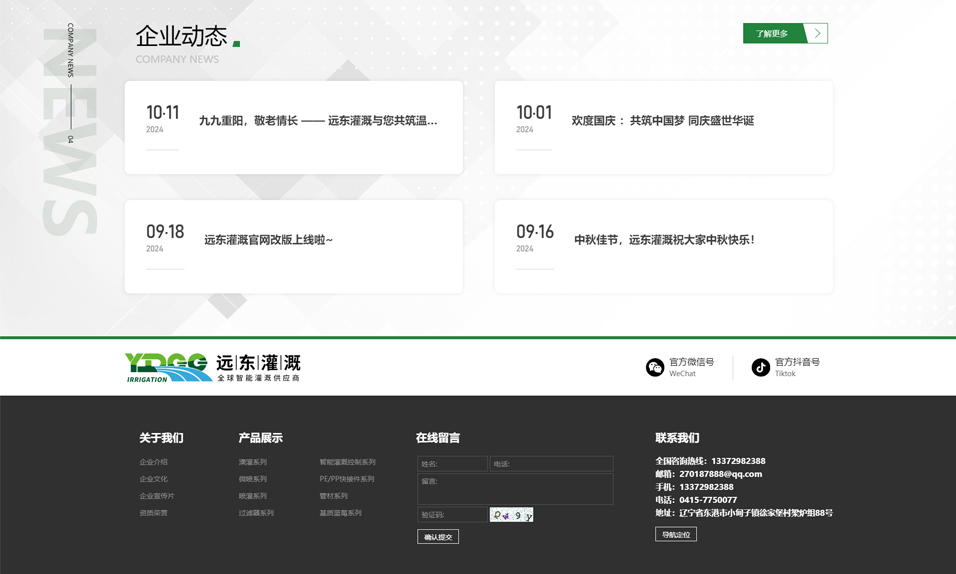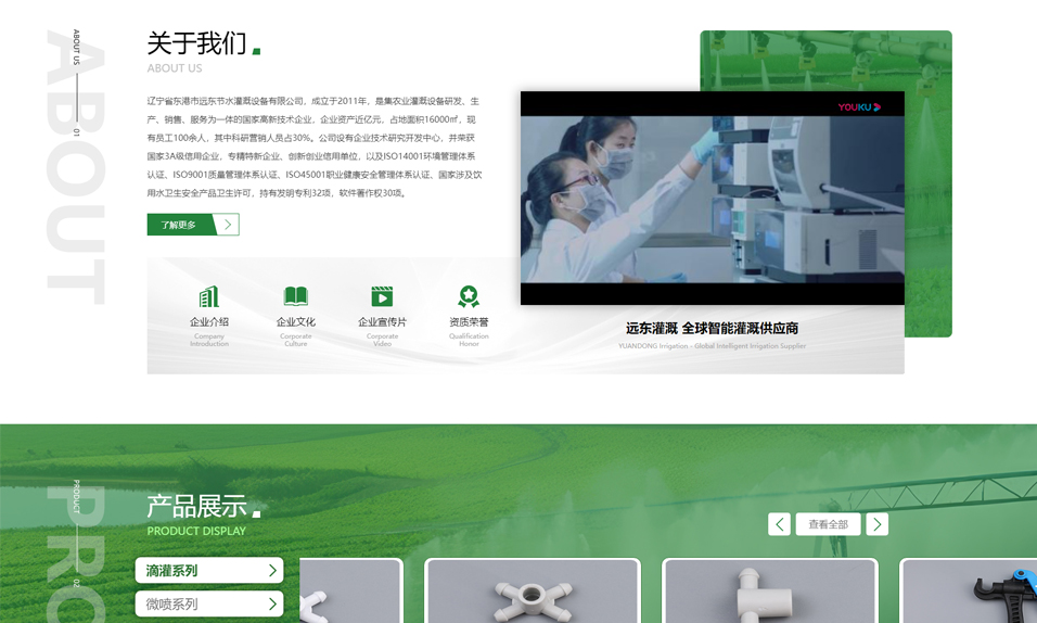 遼寧省東港市遠(yuǎn)東節(jié)水灌溉設(shè)備有限公司,成立于2011年,是集農(nóng)業(yè)灌溉設(shè)備研發(fā)、生產(chǎn)、銷售、服務(wù)為一體的國家高新技術(shù)企業(yè),企業(yè)資產(chǎn)近億元,占地面積16000㎡,現(xiàn)有員工100余人,其中科研營銷人員占30%。公司設(shè)有企業(yè)技術(shù)研究開發(fā)中心,并榮獲國家3A級信用企業(yè),專精特新企業(yè)、創(chuàng)新創(chuàng)業(yè)信用單位,以及ISO14001環(huán)境管理體系認(rèn)證、ISO9001質(zhì)量管理體系認(rèn)證、ISO45001職業(yè)健康安全管理體系認(rèn)證、國家涉及飲用水衛(wèi)生安全產(chǎn)品衛(wèi)生許可,持有發(fā)明專利32項,軟件著作權(quán)30項。